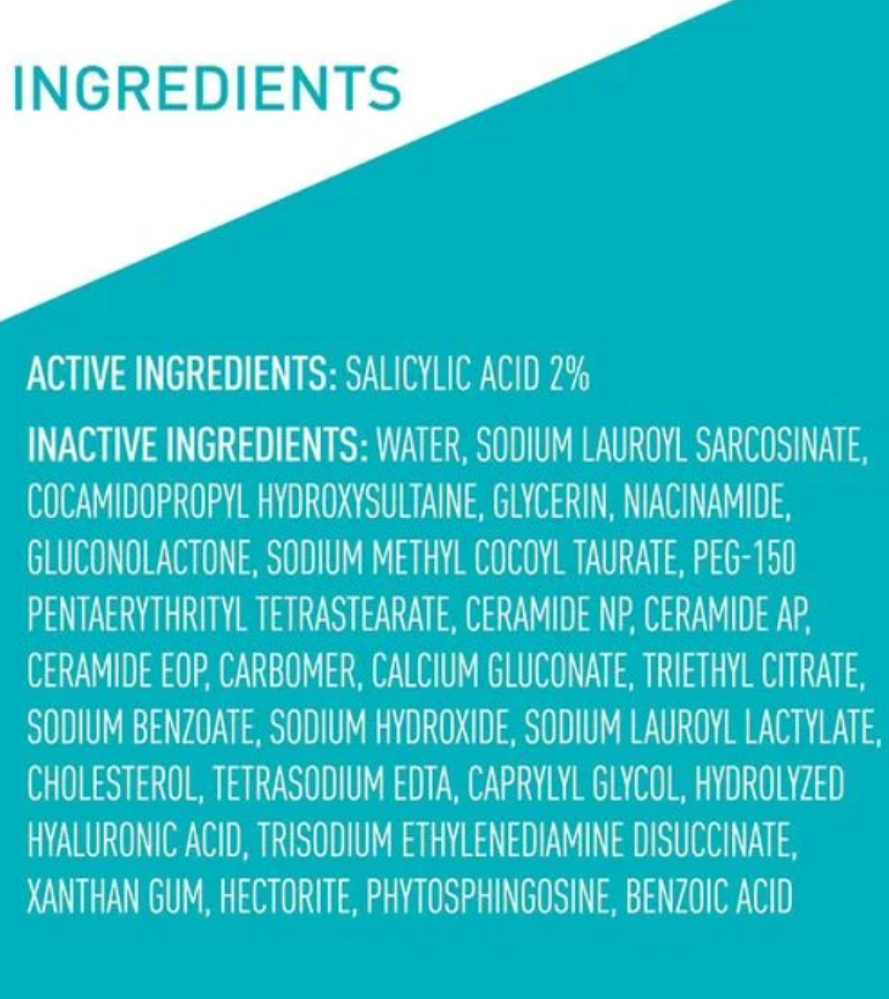 يرجى العلم أنه يتم تحديث قوائم المكونات لمنتجات علامتنا التجارية بانتظام. يرجى الرجوع إلى قائمة المكونات الموجودة على عبوة منتجك للحصول على أحدث قائمة لمكونات غسول حب الشباب من سيرافي للتأكد من أنها مناسبة لاستخدامك الشخصي.