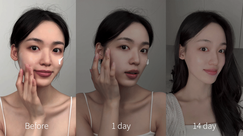 • قبل – بعد يوم واحد – بعد 14 يومًا من كريم تفتيح دكتور ميلاكسين :