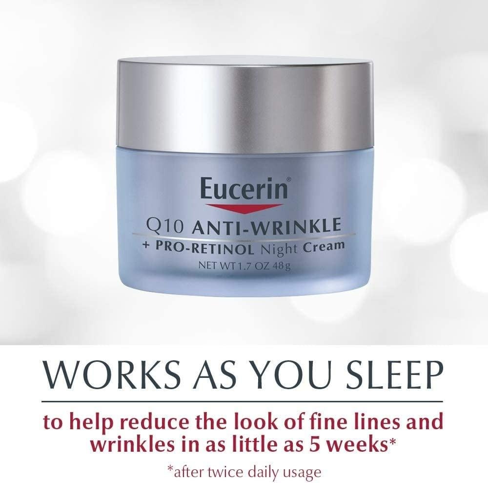كريم يوسيرين الليلي (Eucerin Q10 Anti-Wrinkle Night Cream) هو منتج مصمم خصيصًا للعناية بالبشرة أثناء الليل. يساعد هذا الكريم في تقليل ظهور التجاعيد والخطوط الدقيقة بفضل تركيبته الفعّالة التي تحتوي على مضادات الأكسدة مثل Q10، إلى جانب مكونات مهدئة للبشرة. يتميز الكريم بتركيبته المغذية التي تجدد البشرة وتعيد حيويتها أثناء النوم.